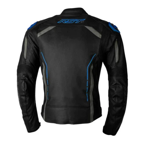 RST S-1 CE Men’s Leather Motorcycle Jacket – Black, Grey, & Neon Blue
